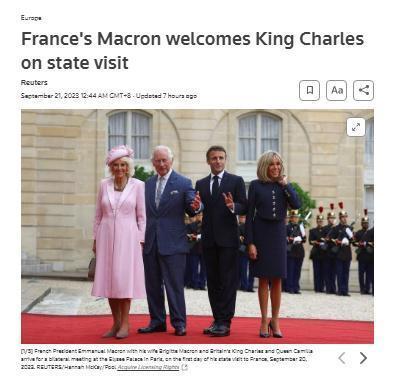 中新网9月21日电综合法新社、路透社报道,当地时间20日,英国国王查尔斯三世抵达法国,进行自其登基后为期三天的首次国事访问。
