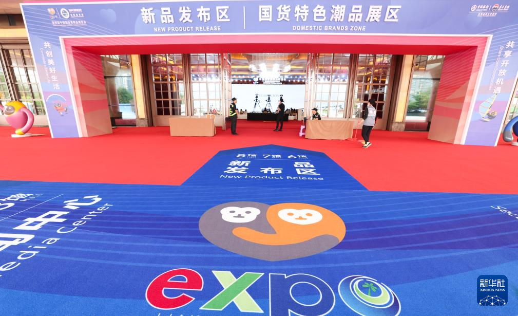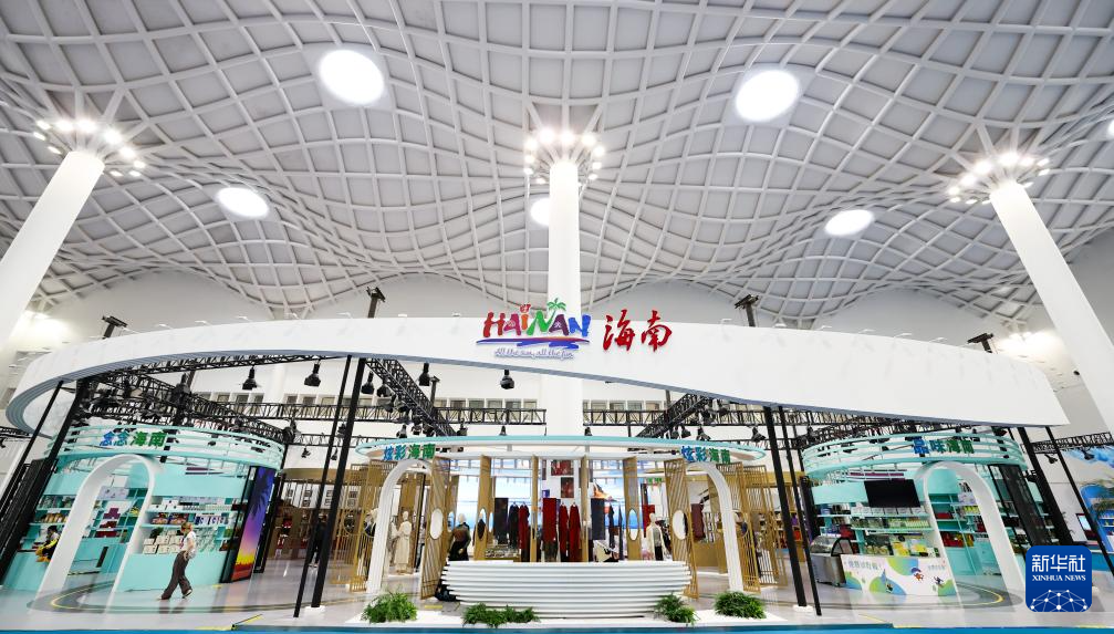 这是4月12日拍摄的第四届中国国际消费品博览会新品发布区和国货特色潮品展区。