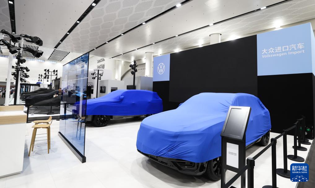 这是4月12日拍摄的第四届中国国际消费品博览会时尚生活消费展区的参展汽车。