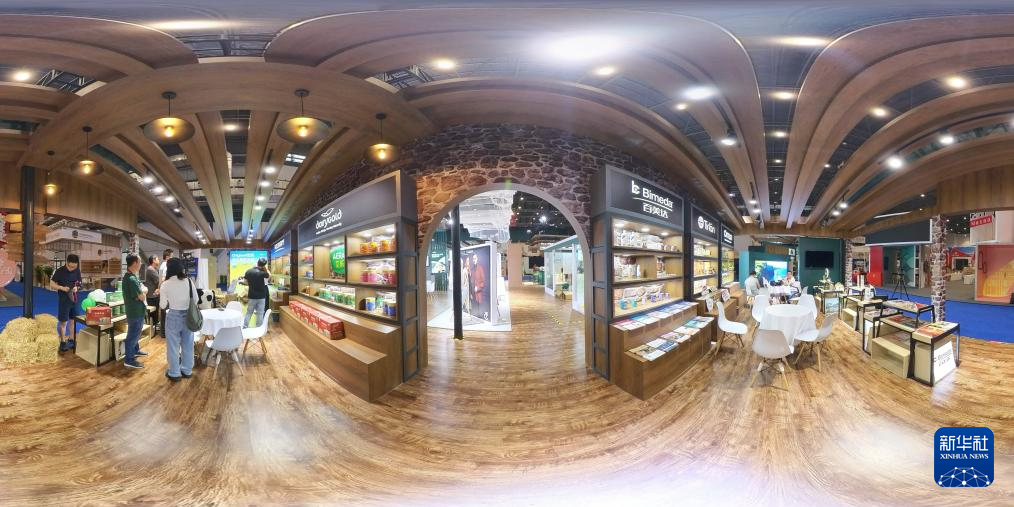 4月12日拍摄的第四届中国国际消费品博览会主宾国爱尔兰国家馆展区一角(全景相机拍摄)。