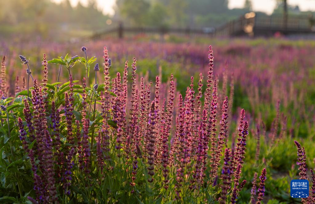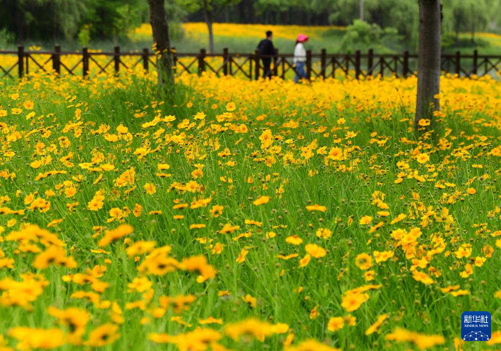 5月12日,游人在江苏无锡贡湖湾湿地公园赏花游玩。
