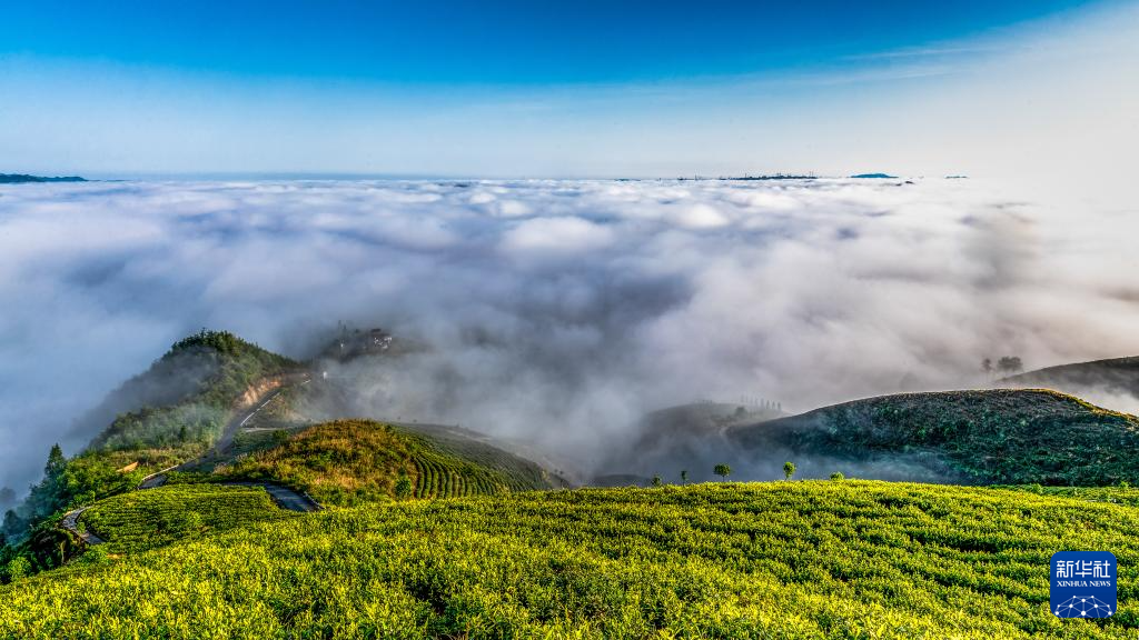 5月6日,重庆市南川区雨后放晴,山间出现平流雾,宛如仙境。