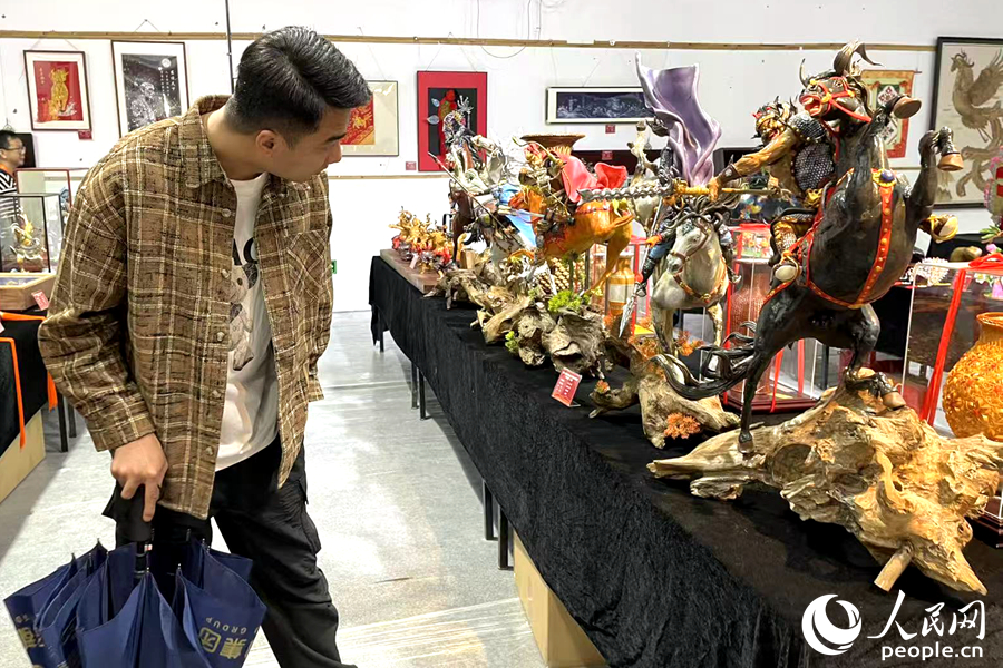 工艺美术爱好者观赏参展作品。人民网记者 林盈摄