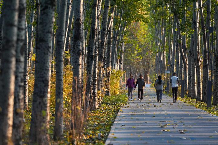 市民在北京市朝阳区的朝阳绿道上散步休闲(2025年11月14日摄)。新华社记者 鞠焕宗 摄
