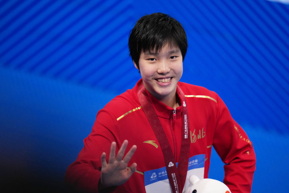 泳池里,年轻一代同样耀眼。山东队18岁新秀张展硕在男子1500米自由泳中称雄,收获本届全运会个人第五金。13岁的河北选手于子迪在女子400米个人混合泳中折桂,以三金结束首次全运征程。