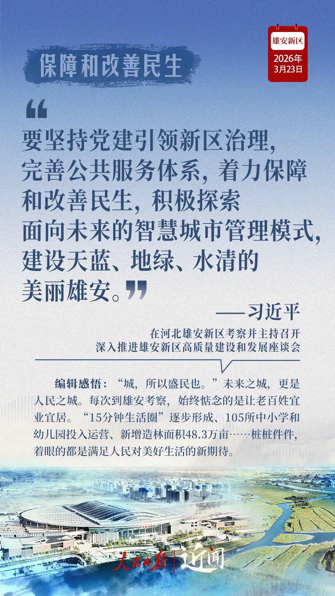 9年时间,从一块地到一张图,再到一座城,“党中央始终给予最大的希望”;从第一次到雄安时在安新县主持召开的一场小型座谈会,到高标准高质量推进雄安新区建设座谈会,再到深入推进雄安新区高质量建设和发展座谈会,一步一个脚印,刻印下现代化“未来之城”的拔节生长。