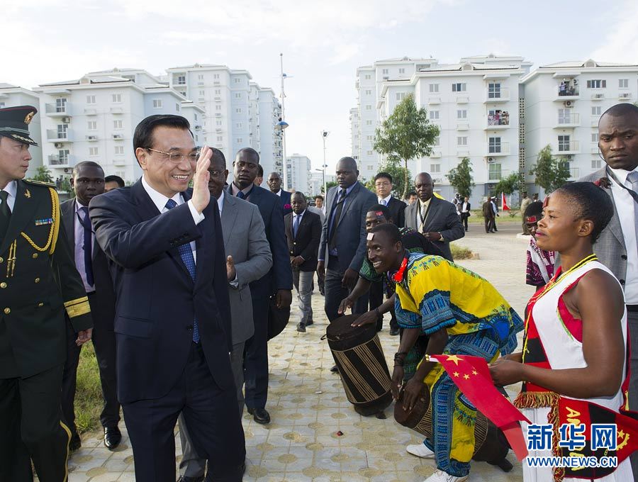 5月8日,国务院总理李克强在安哥拉首都罗安达参观中信百年职业学校。这是学生们跳起热情奔放的非洲舞蹈欢迎李克强的到来。新华社记者王晔摄