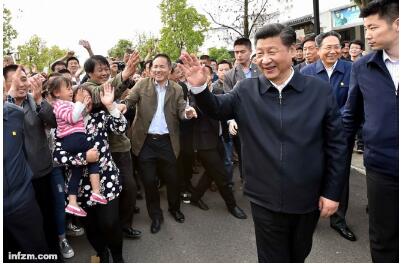 2016年4月24日至27日,中共中央总书记、国家主席、中央军委主席习近平在安徽调研。这是4月25日下午,习近平在滁州市凤阳县小岗村向村民们问好。(新华社记者❘李涛❘摄)