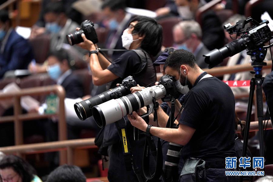 5月22日,第十三届全国人民代表大会第三次会议在北京人民大会堂开幕。这是记者在采访。新华社记者刘金海摄