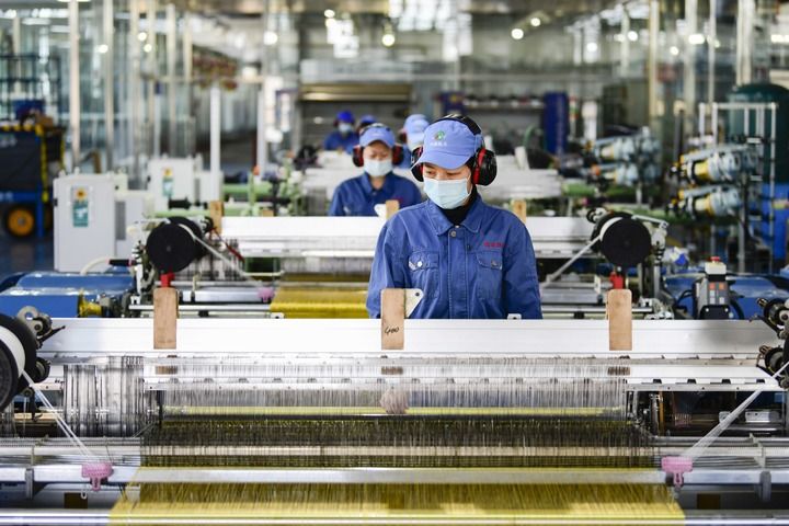 1月28日,在内蒙古呼和浩特市,工人在F-12纤维产品生产线上作业。新华社发(王正摄)