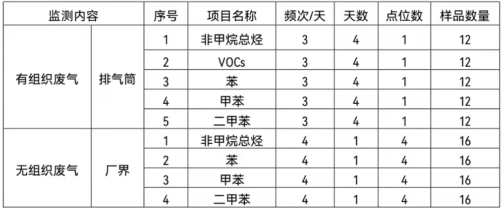 2、采购内容:有组织废气、厂界无组织废气及噪声监测服务并出具相关监测报告。