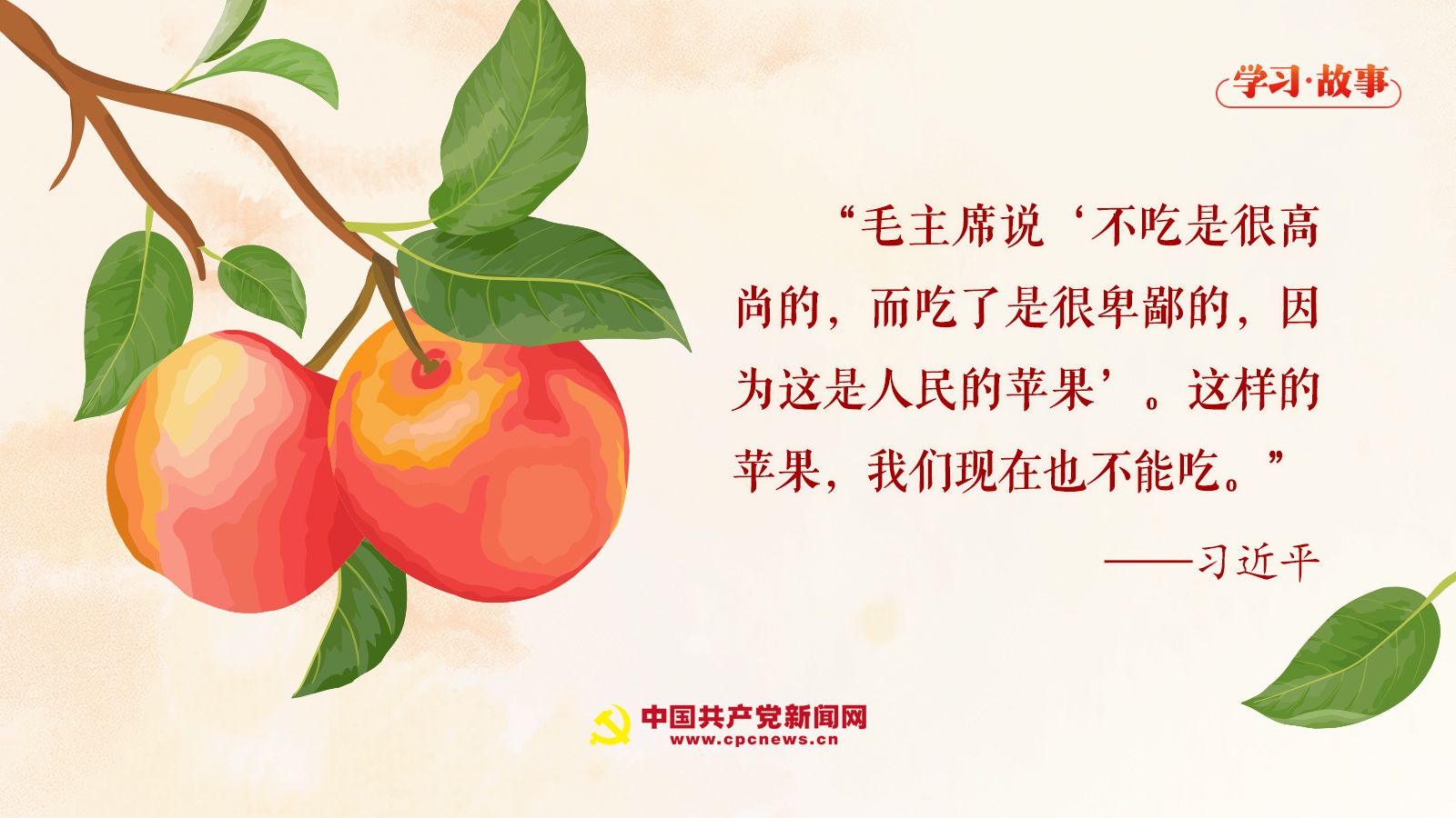 “毛主席说‘不吃是很高尚的,而吃了是很卑鄙的,因为这是人民的苹果’。这样的苹果,我们现在也不能吃。”习近平总书记意味深长地说。