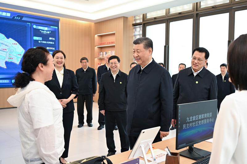 △2024年4月22日,习近平总书记来到重庆九龙坡区谢家湾街道民主村社区,察看小区改造和便民服务情况,听取提升基层治理效能、为基层减负情况介绍。