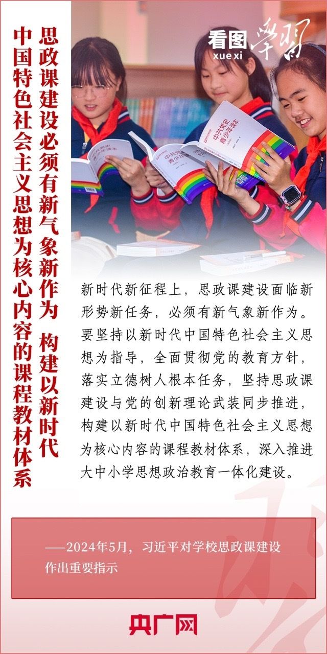 近日,习近平总书记对学校思政课建设作出重要指示。总书记强调,新时代新征程上,思政课建设面临新形势新任务,必须有新气象新作为。各级党委(党组)要把思政课建设摆上重要议程,各级各类学校要自觉担起主体责任,不断开创新时代思政教育新局面,努力培养更多让党放心、爱国奉献、担当民族复兴重任的时代新人。一起来学习!