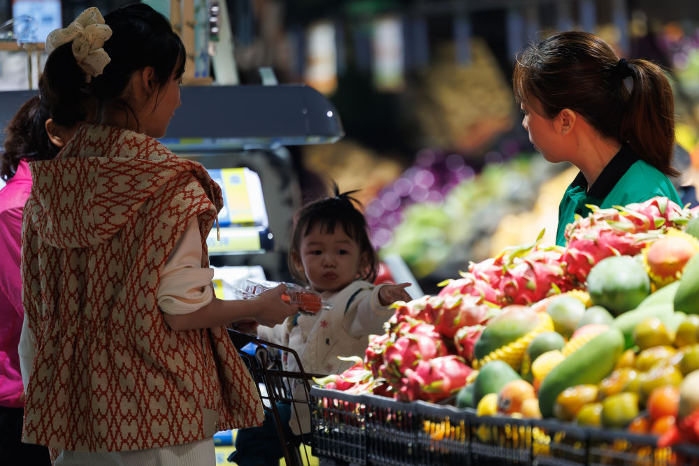 10月1日,市民在贵阳市观山湖区合力惠民生鲜超市购物。新华社记者 刘续 摄