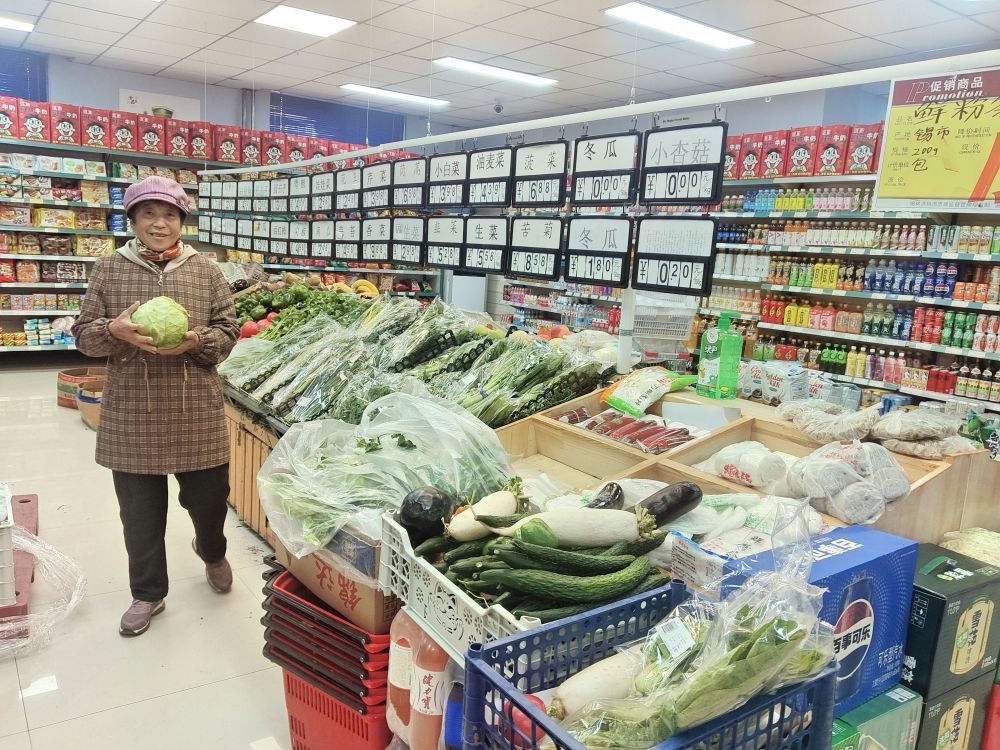 爱民社区的居民在民惠超市选购生活用品。(谷国芬)