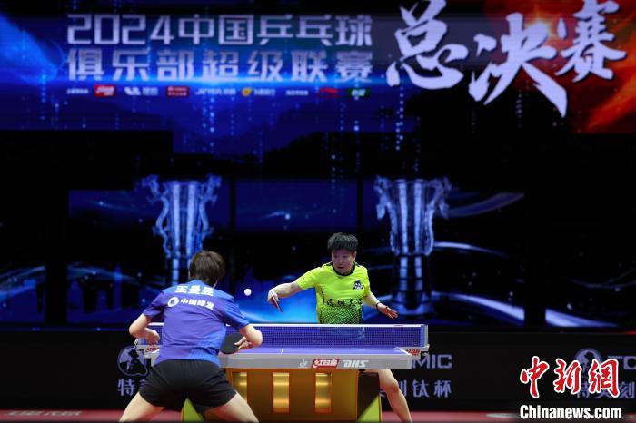 1月1日,2024赛季中国乒乓球俱乐部超级联赛总决赛女子团体决赛1日落幕,王曼昱所在的山东鲁能队获得2024乒超联赛女子团体冠军。图为王曼昱与孙颖莎正在比赛。中新网记者 汤彦俊 摄