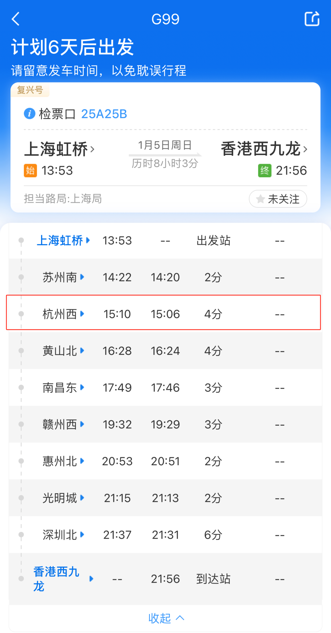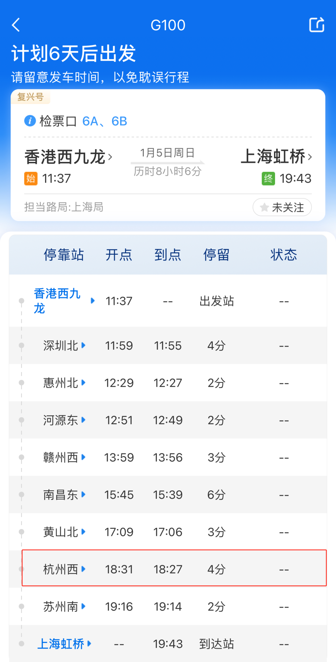 央视网消息:据杭州交通微信公众号消息,2025年1月5日起,杭州西站将首次开通往返香港西九龙的高铁。2025年1月5日零时起,全国铁路将实施2025年第一季度列车运行图,连接上海虹桥与香港西九龙的G99/G100次列车将改变路线,经停杭州西站,旅客可以持有效签注直达香港西九龙站。