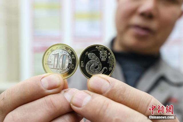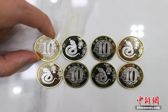 1月3日,贵州贵阳,市民在中国工商银行一支行展示纪念币。当日,由中国人民银行发行的2025年贺岁双色铜合金纪念币开始兑换。双色铜合金纪念币面额10元,直径27毫米,材质为双色铜合金,发行数量为1亿枚。中新社记者 瞿宏伦 摄