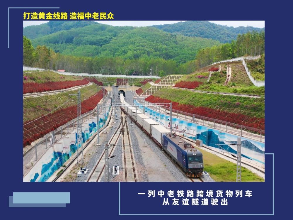2021年12月3日,中老铁路全线开通运营。习近平总书记通过视频连线出席中老铁路通车仪式时指出,中老铁路是两国互利合作的旗舰项目。铁路一通,昆明到万象从此山不再高、路不再长。双方要再接再厉、善作善成,把铁路维护好、运营好,把沿线开发好、建设好,打造黄金线路,造福两国民众。