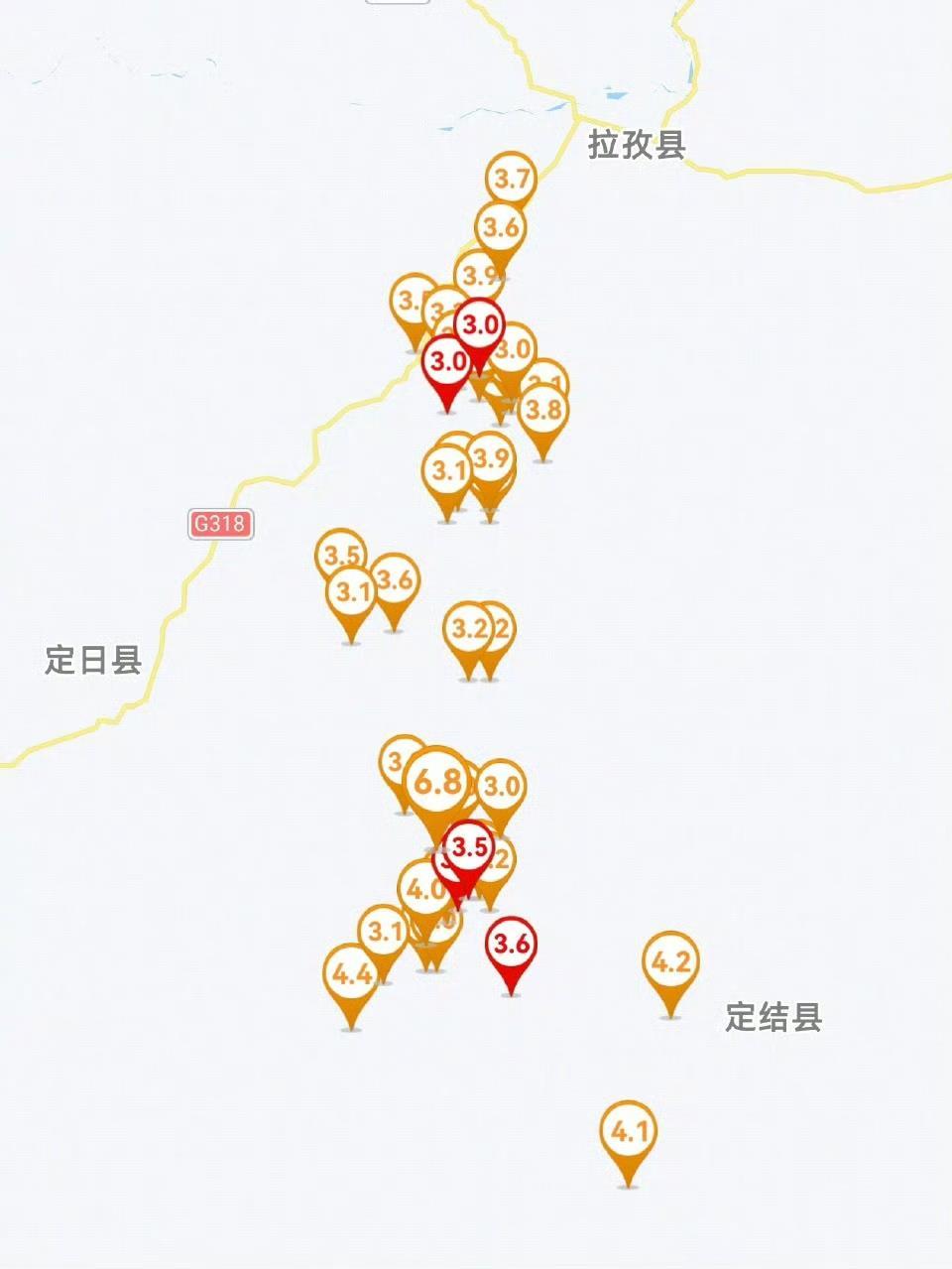 截至1月10日08时00分,西藏定日6.8级地震共记录到余震1601次,其中2.0级以下1239次,2.0-2.9级324次,3.0-3.9级34次,4.0-4.9级4次,5.0级以上0次。目前最大余震为4.4级,距主震约18公里。