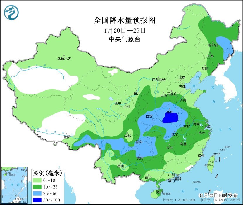 未来10天(1月20-29日),西南地区东部、西北地区东部、华北大部、东北地区东部、黄淮、江淮、江汉、江南等地累计降水量有5~15毫米,四川盆地东部、江汉、黄淮、江淮、江南北部及贵州等地的部分地区有20~40毫米;上述大部地区累计降水量较常年同期明显偏多,主要出现在24-26日。