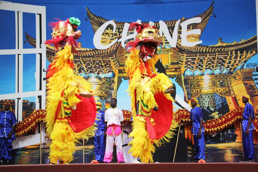 △当地时间1月25日,在贝宁科托努的贝宁中国文化中心,演员在表演舞狮庆祝春节。