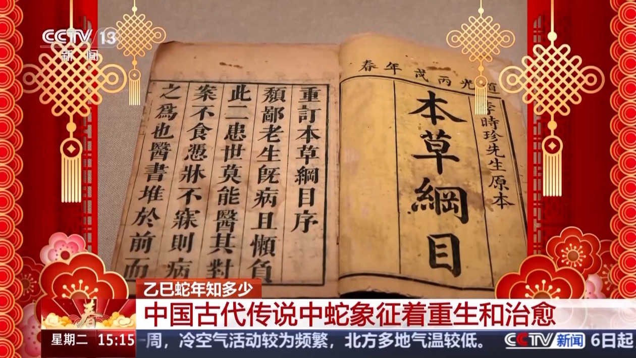 此外,在中国古代传说中,蛇还象征着重生和治愈。《山海经》就有用蛇治病的记载,著名医学家李时珍所著的《本草纲目》中也有以蛇为药的记录,根据蛇不同的部位,介绍了蛇对治疗人体诸多疾病的成效。