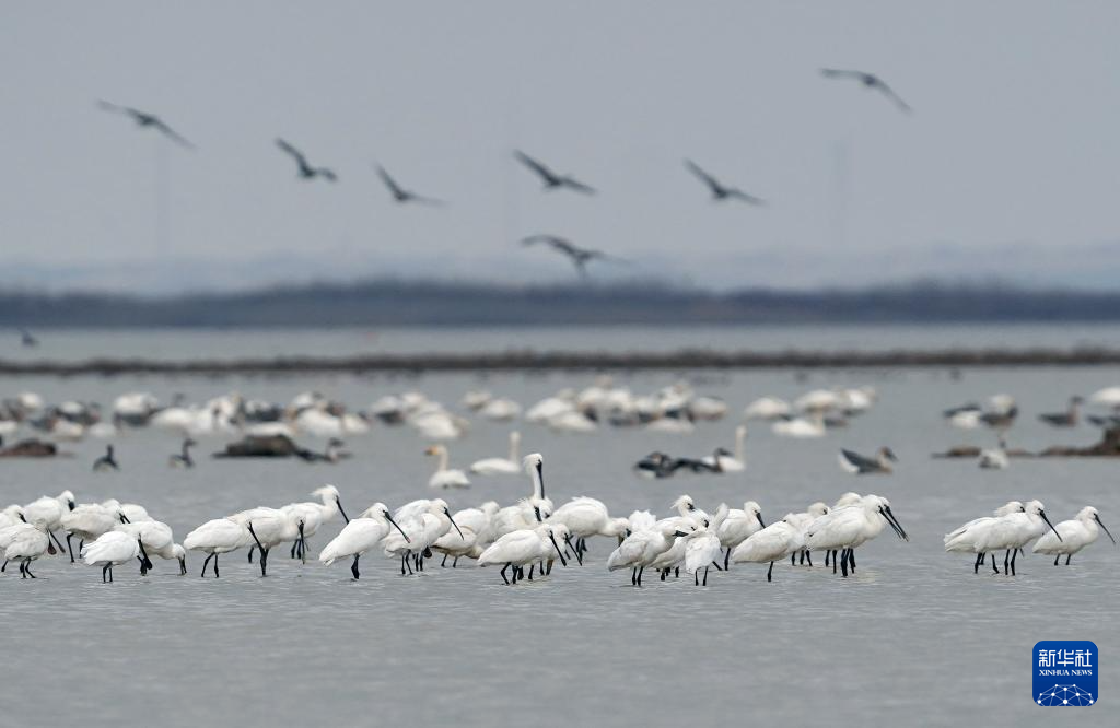 近日,大批越冬候鸟在江西鄱阳湖区陆续集结,等待水位上涨和气温回升后启程北迁之旅。