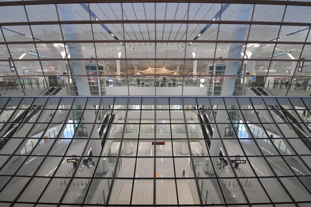西安咸阳国际机场T5航站楼外景。新华社记者 邵瑞 摄