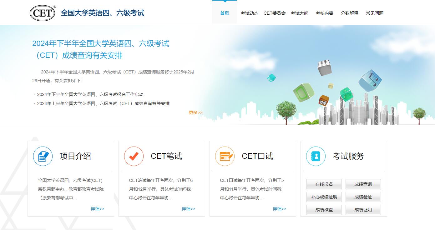 从教育部教育考试院获悉,2024年下半年全国大学英语四、六级考试(CET)成绩查询服务于26日6时开通,考生可通过中国教育考试网及其相关小程序进行查询。