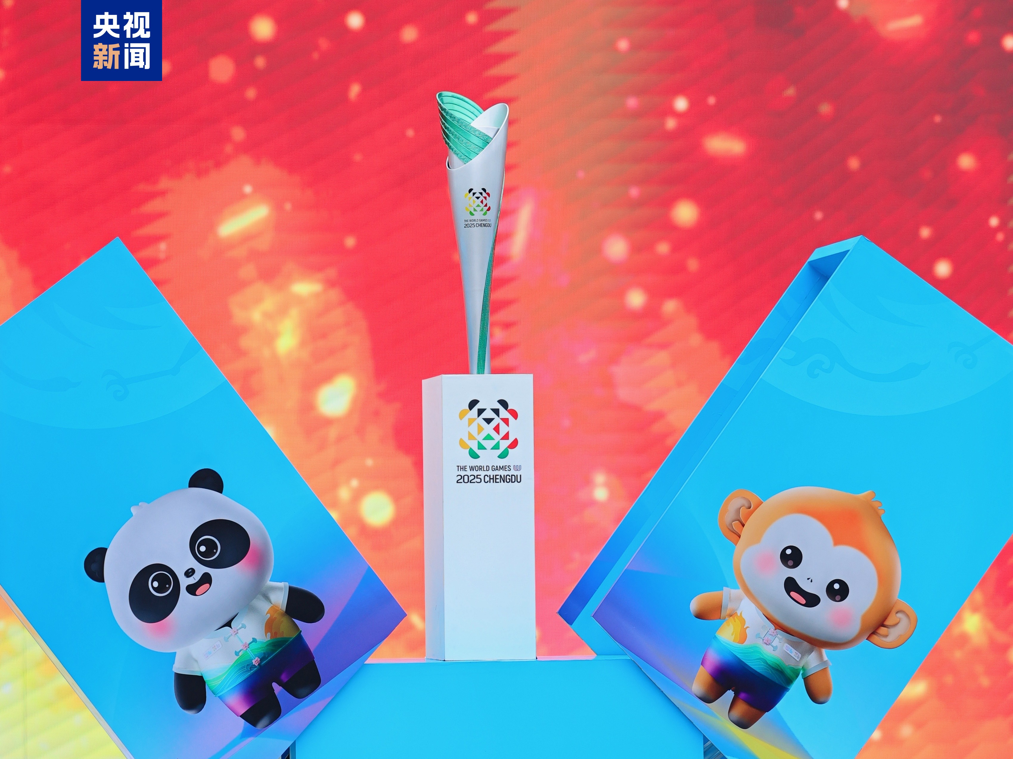 火炬纹饰设计也是别具匠心:会徽居中醒目,成都世运会吉祥物蜀宝、锦仔灵动跃然其上;出火口灵感来源于金沙遗址铜立人像太阳冠,底部则以三星堆凤鸟纹托举火炬,将古蜀文明与现代体育精神完美融合,也向世界讲述着“缘”起天府的动人故事。