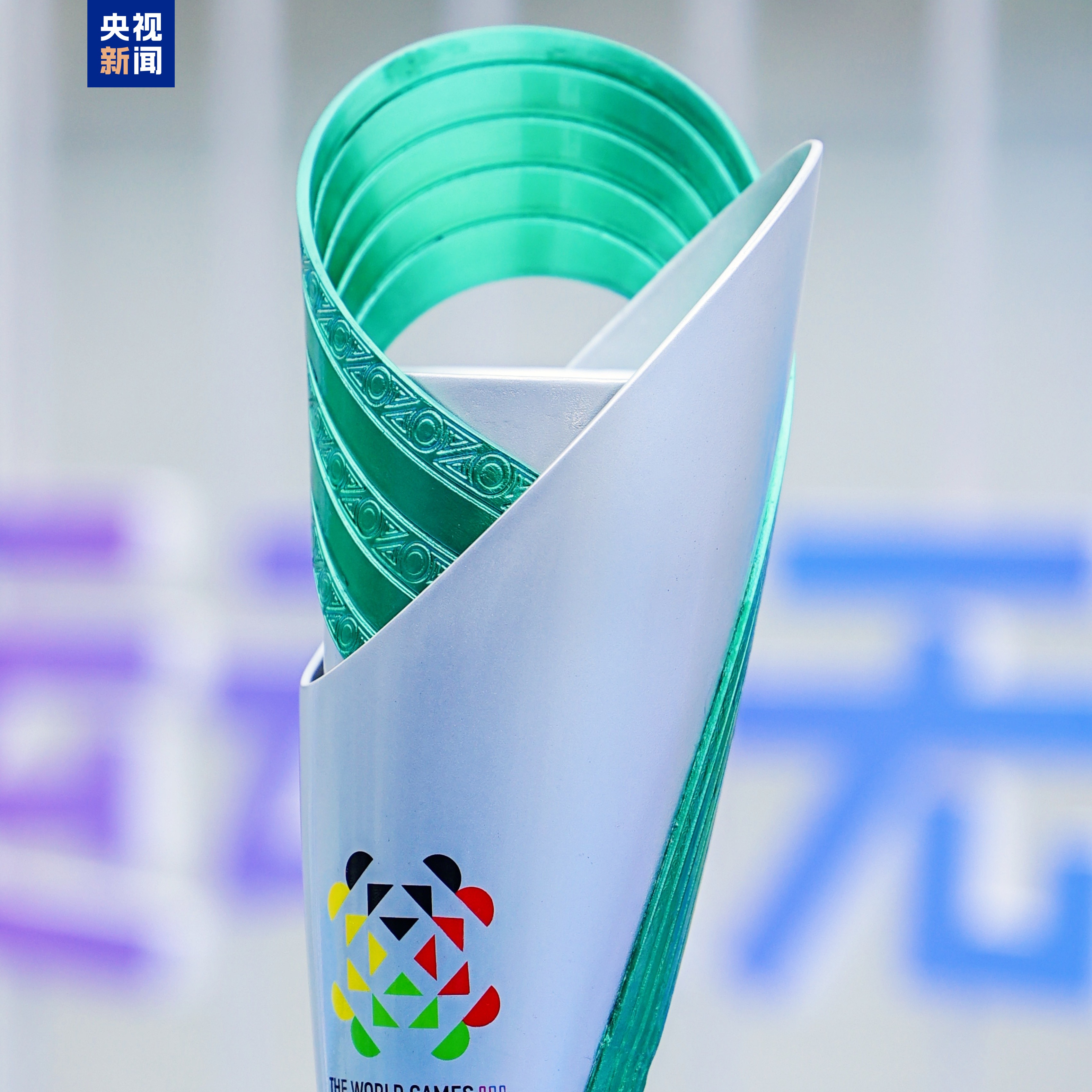 火炬的颜色以绿色和银色为主。绿色代表世界的底色,成都世运会践行绿色低碳理念,公园城市推窗见绿,与世运项目活力场景自然融洽;银色则象征科技与创新、速度与动力。火炬整体象征着中国时时逐“绿”而行、处处向“新”发力,与世界共赴未来。