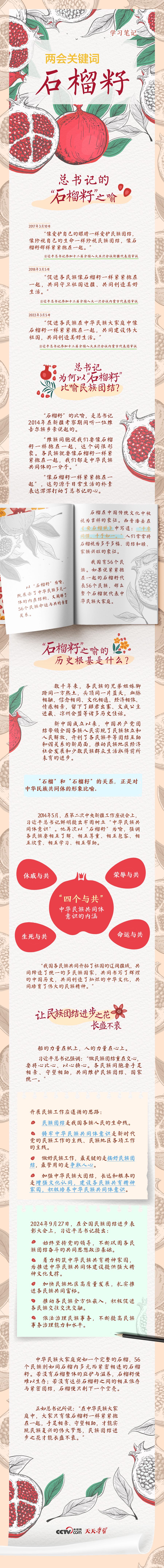 我国是统一的多民族国家,中华民族多元一体是我国的一个显著特征。习近平总书记在两会期间多次用“石榴籽”比喻民族团结。