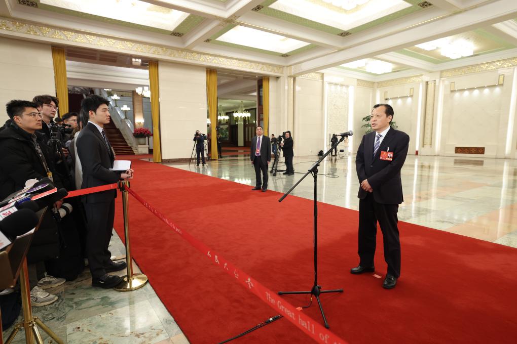 3月5日,第十四届全国人民代表大会第三次会议首场“部长通道”集中采访活动在北京人民大会堂举行。这是交通运输部部长刘伟接受媒体采访。新华社记者 陈晔华 摄
