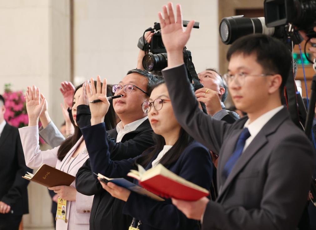 3月4日举行的首场“委员通道”集体采访活动上,记者举手提问。