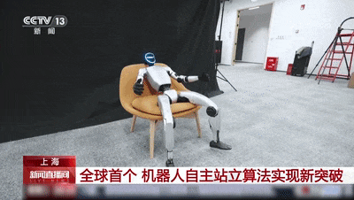 无论是坐着、靠着还是躺着,也不管身处草地、沙石,还是软垫,这台人形机器人都可以像人一样快速实现自主起身站立,动作平稳、干脆利落。