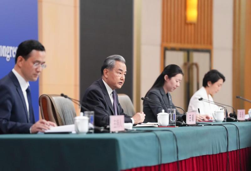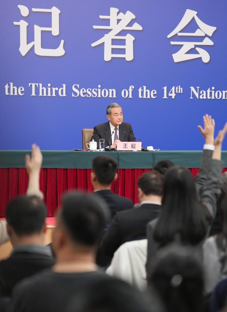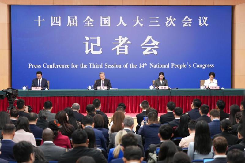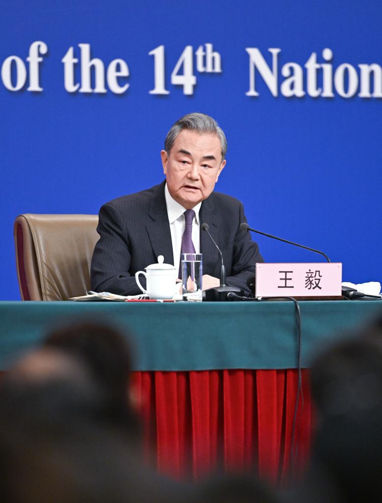 3月7日,十四届全国人大三次会议在北京梅地亚中心新闻发布厅举行记者会。中共中央政治局委员、外交部长王毅就中国外交政策和对外关系回答中外记者提问。新华社记者 陈晔华 摄