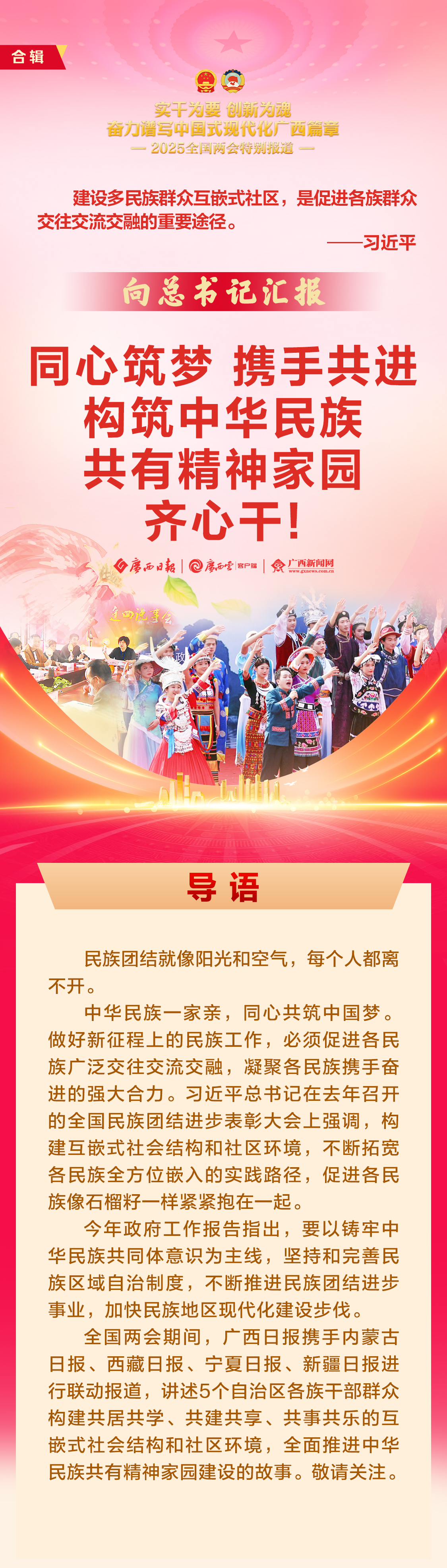 籽籽同心,携手共进。2025全国两会期间,广西云-广西日报联合内蒙古日报·草原云、西藏日报、宁夏广播电视台·黄河云视、石榴云/新疆日报,特别推出《民族绘卷H5 | 幸福家园 石榴花开》。点击上面图片进入绘卷,看石榴花开遍祖国大江南北!