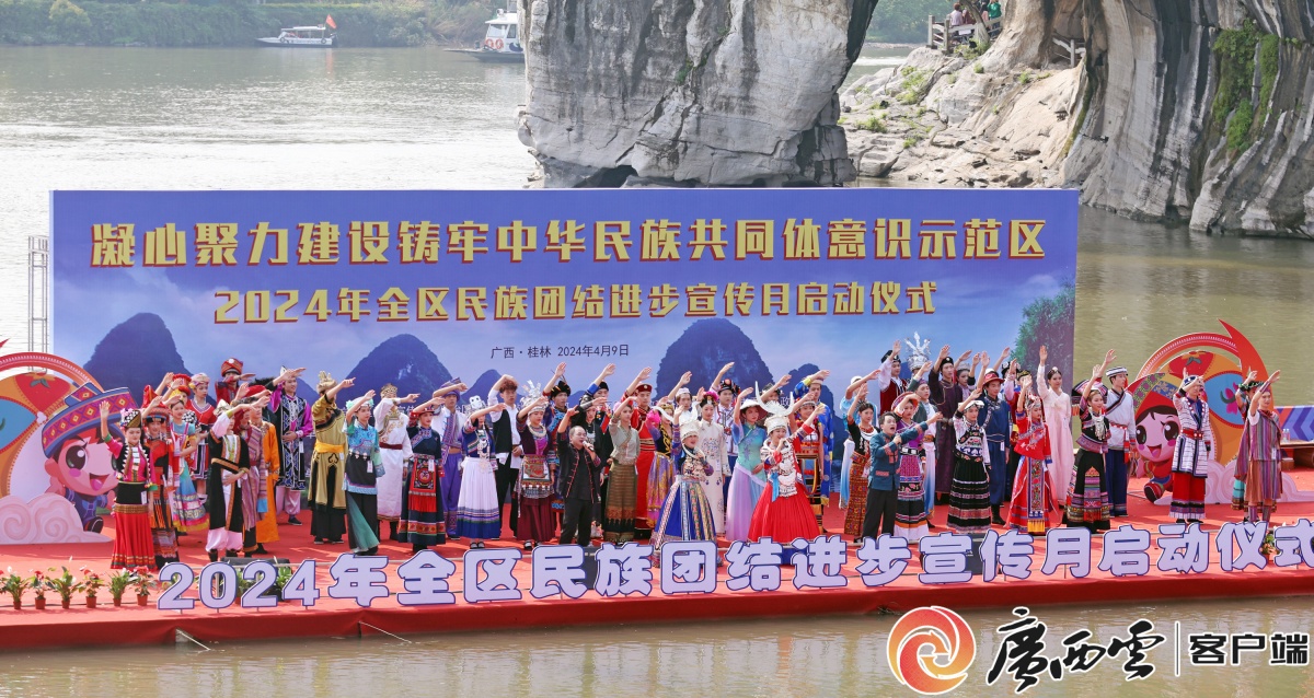 2024年全区民族团结进步宣传月启动仪式在桂林举行,广西、内蒙古、宁夏、新疆等省区的各族同胞同台演出,营造铸牢中华民族共同体意识的浓厚氛围。黄云 摄