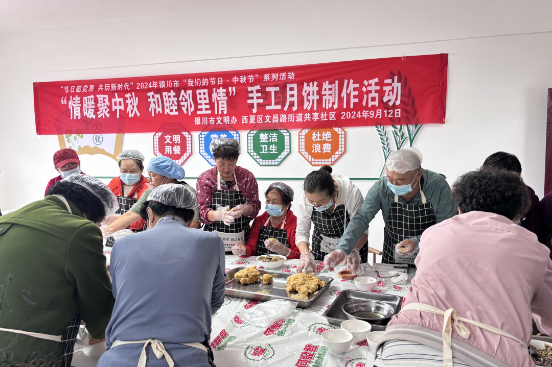 银川市西夏区文昌路街道共享社区开展“情暖聚中秋 和睦邻里情”月饼制作活动。图源:宁夏统战微信公众号