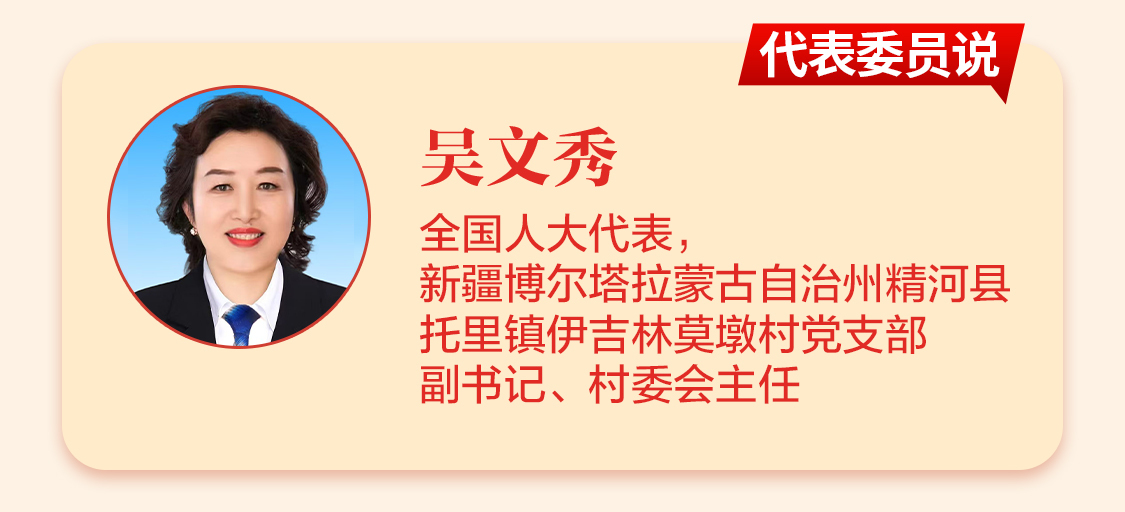 “互嵌式社区不是简单的空间嵌入,而是让各族群众在柴米油盐中,成为有情感共鸣的一家人。”全国人大代表、新疆维吾尔自治区博尔塔拉蒙古自治州精河县托里镇伊吉林莫墩村党支部副书记、村委会主任吴文秀说。