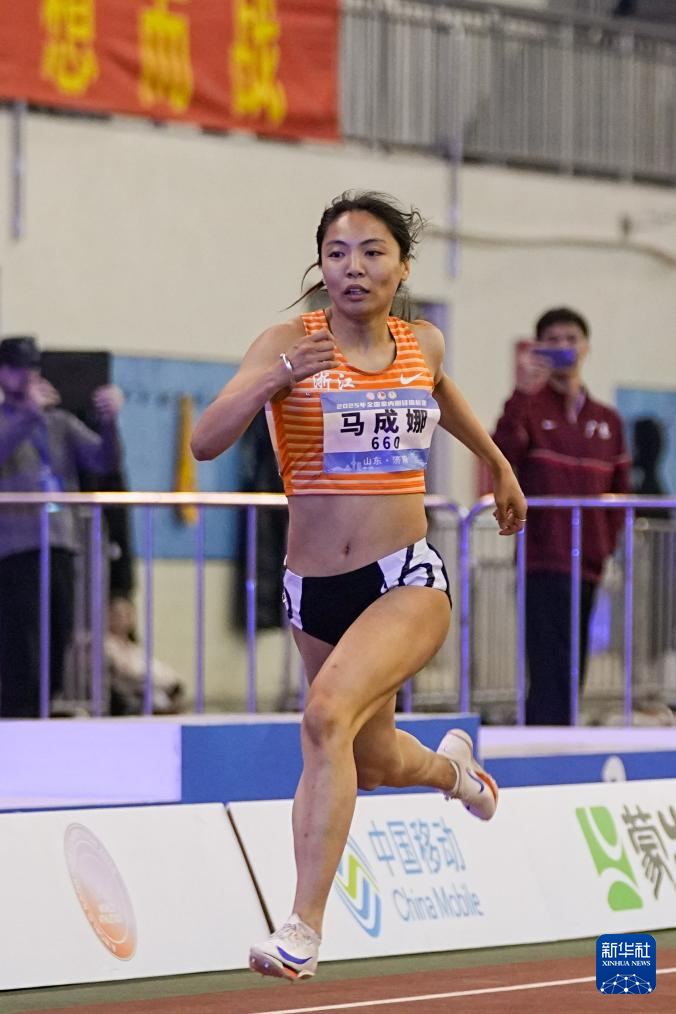 3月9日,浙江体彩队选手马成娜在女子200米决赛中。她以24秒11的成绩获得冠军。