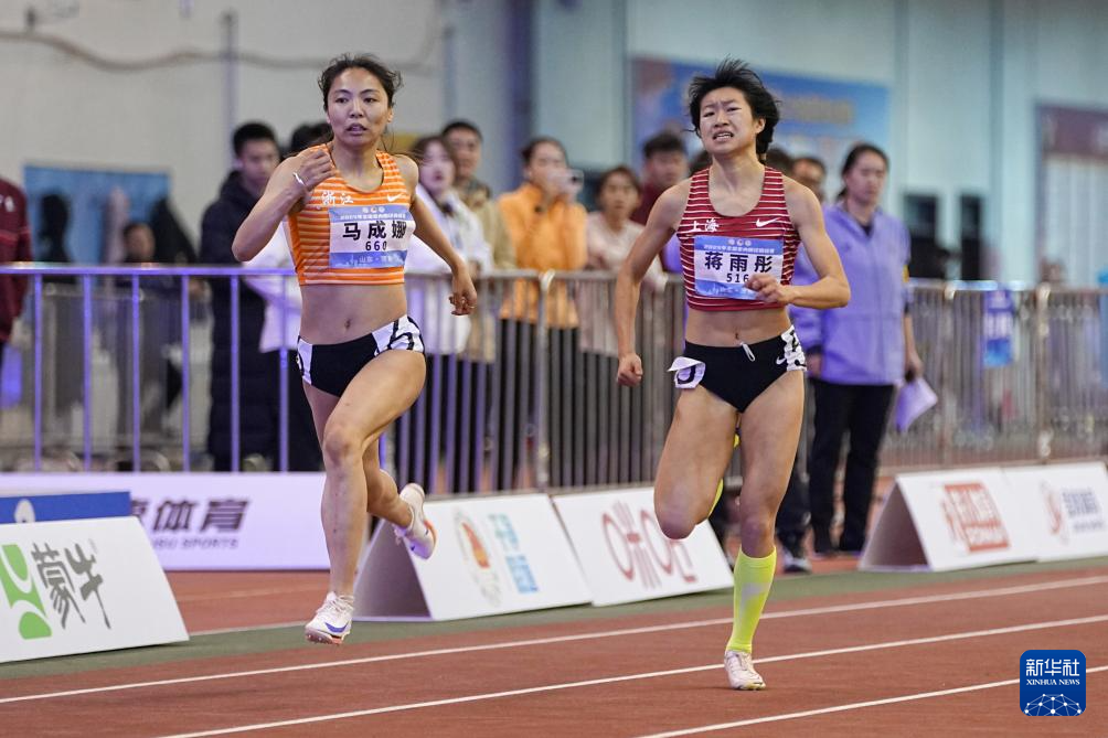 3月9日,浙江体彩队选手马成娜(左)在女子200米决赛中。她以24秒11的成绩获得冠军。