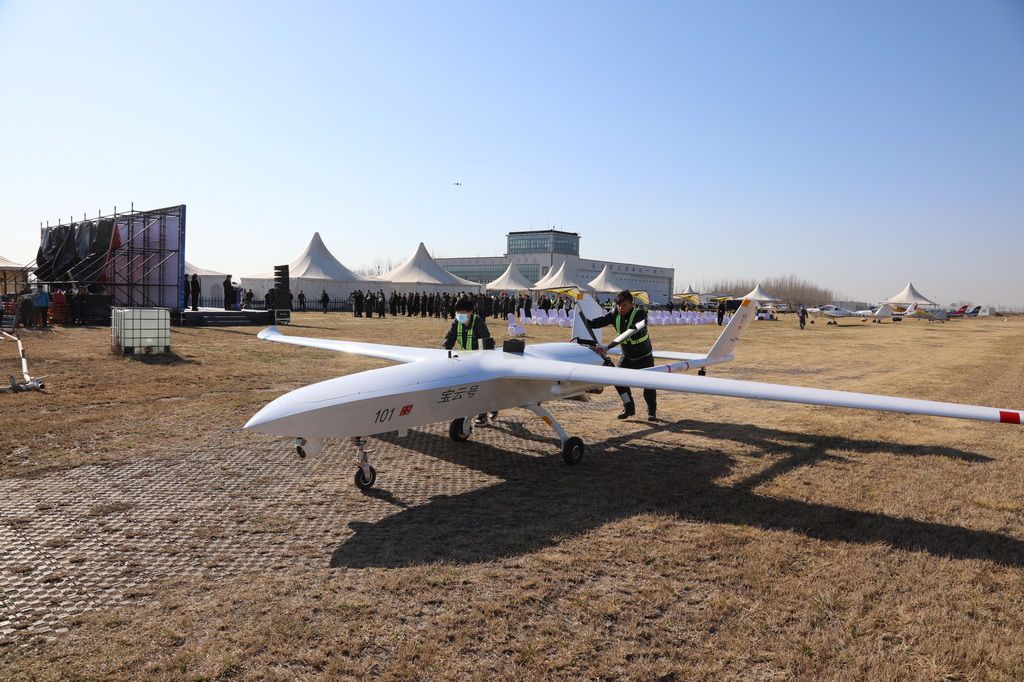 “宝云号”是由衡水桃城机场完全自主研制的长航时大载重无人运输机,最长航时26个小时,比现有续航10小时左右的同类机型续航能力增长超一倍。相较于同类机型每架500万到1000万元的价格,它仅需150万元。这为无人运输机广泛投入应用提供了可能。新华社发(陈连胜 摄)