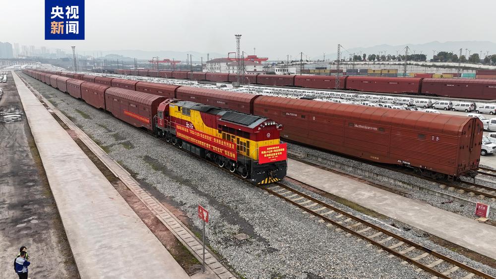 3月21日上午,一列满载200台汽车的铁路JSQ凹底双层运输汽车专用车(以下简称JSQ车)专列从重庆鱼嘴站驶出,将经西部陆海新通道直达广西钦州港,随后通过滚装船发往阿联酋迪拜杰贝阿里港。