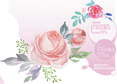我国也是世界上重要的花卉贸易国。2024年,我国花卉进出口贸易总额7.82亿美元,同比增长10%,其中出口额达5.16亿美元,同比增长17.78%。盆栽植物、鲜切花、鲜切枝(叶)国际市场需求增长,出口形势良好。