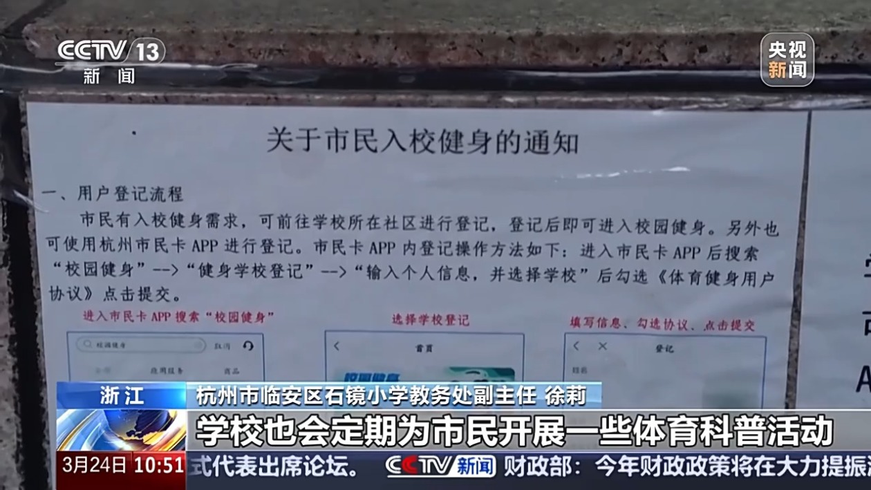 杭州市临安区石镜小学教务处副主任 徐莉:第一我们是服务社会,因为在我们学校附近人口比较密集,学校给市民提供这样的一个场地,能够有效地缓解我们公共体育设施的短缺。第二个是我们的教育延伸,学校也会定期为市民开展一些体育科普活动,将我们的学校场地转化为一个体育健康的科普基地。