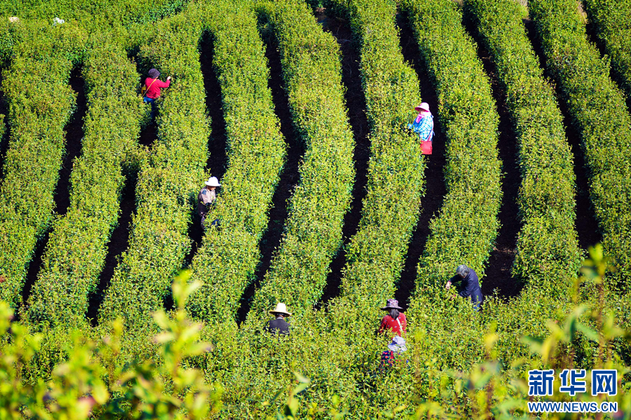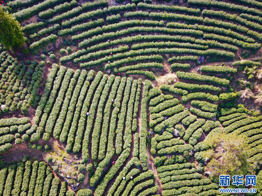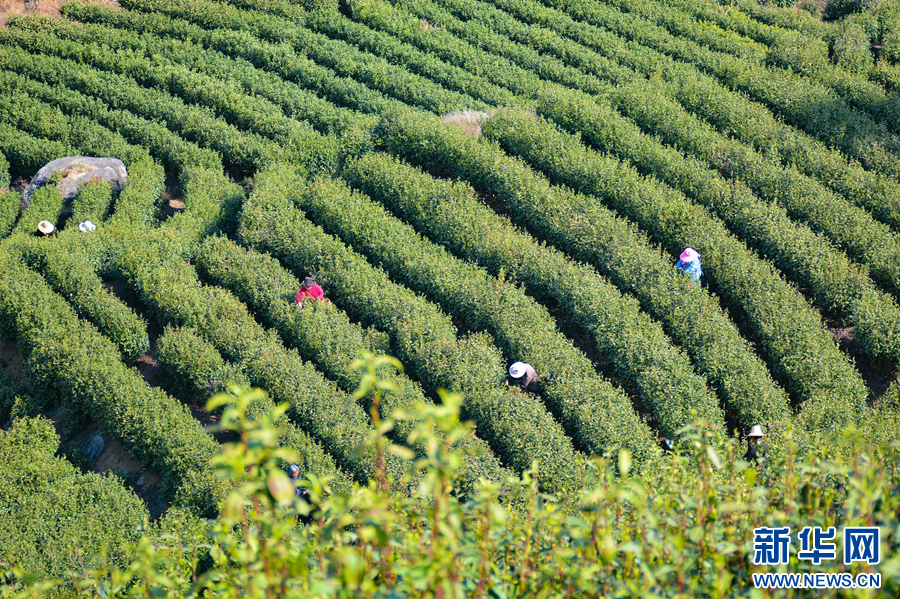 眼下,安徽省安庆市岳西县近20万亩茶园陆续迎来开采期,茶农们正忙着采摘,供应市场。新华网发(吴均奇 摄)