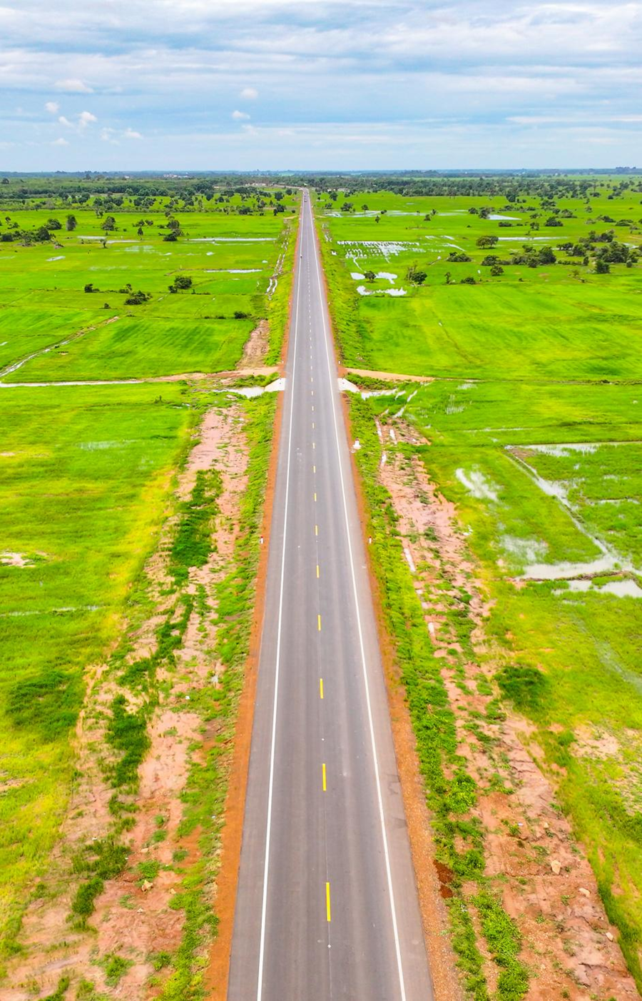 这是2024年7月14日在柬埔寨特本克蒙省拍摄的71C号国家公路(无人机照片)。新华社发(尼多拉 摄)